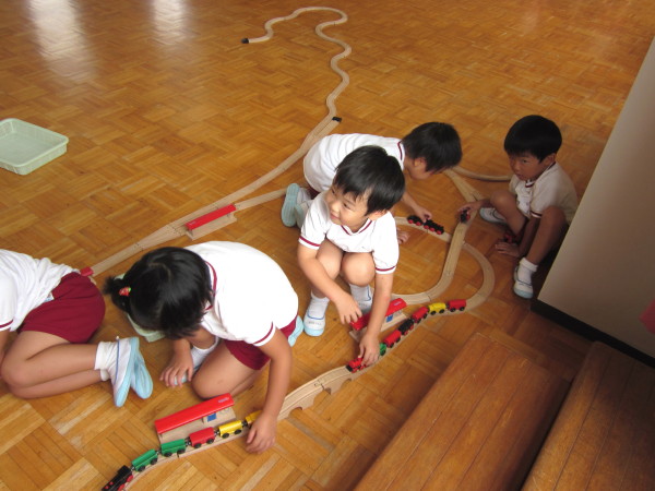 みんなで力を合わせ作った電車も、楽しかったようです♪