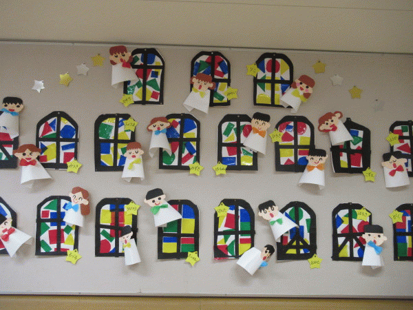 年長組の1月壁面は『聖歌隊とステンドグラス』です♪