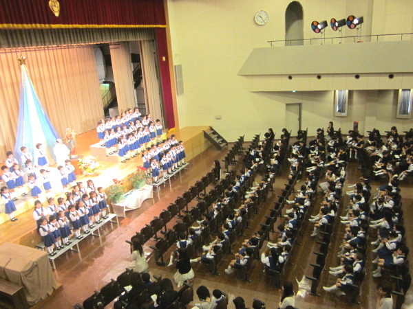 たくさんの保護者の皆様にご参加いただき、講堂にて、聖母祭が行われました。