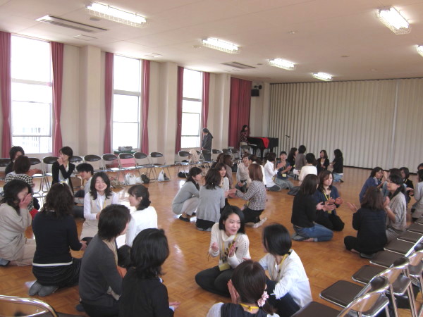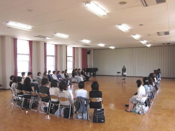 今日は、遊戯室に年長組のお母様方が集まって、「母の集い」が行われました。