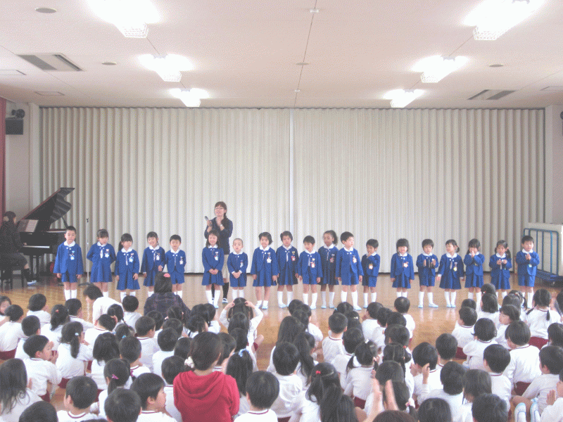 最後は年中組・年長組が向かい合わせに立って、道を作ってくれて、拍手で年少組をお見送りです☆