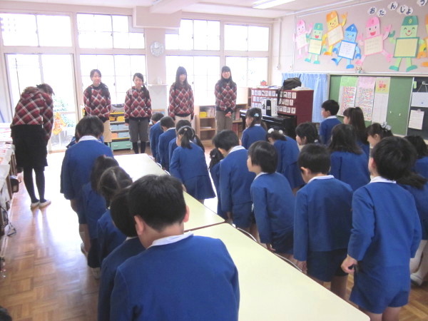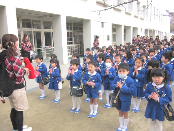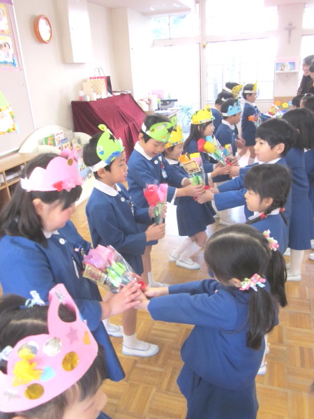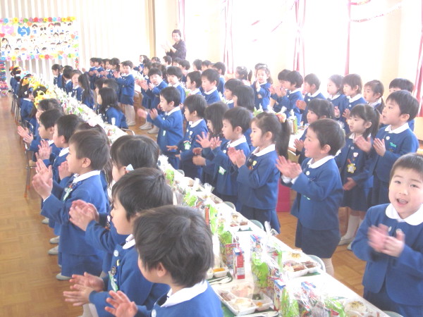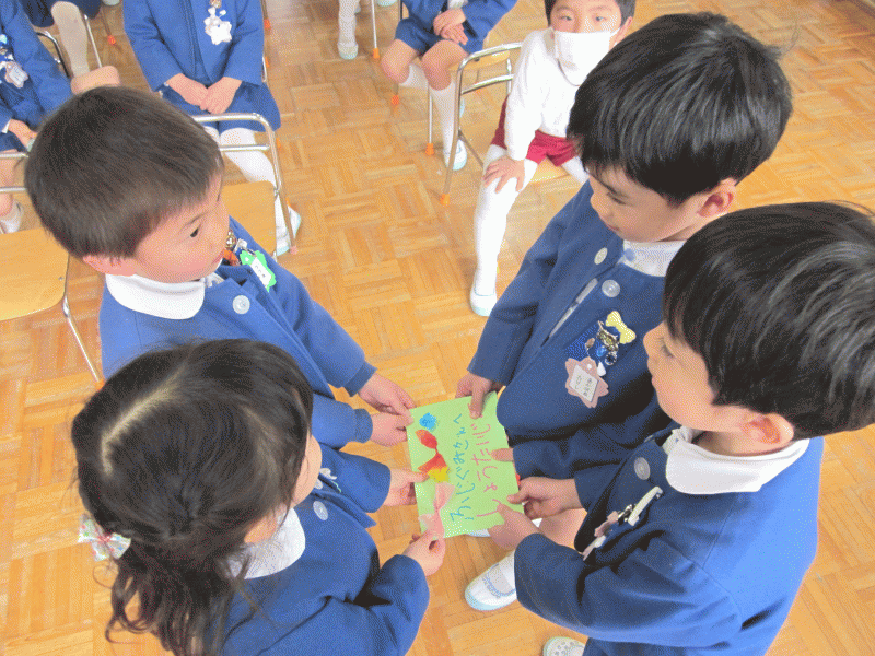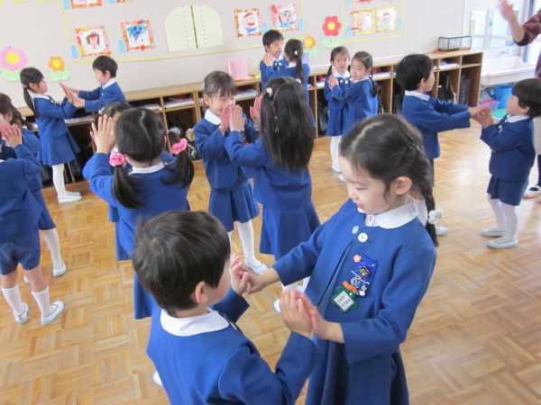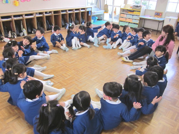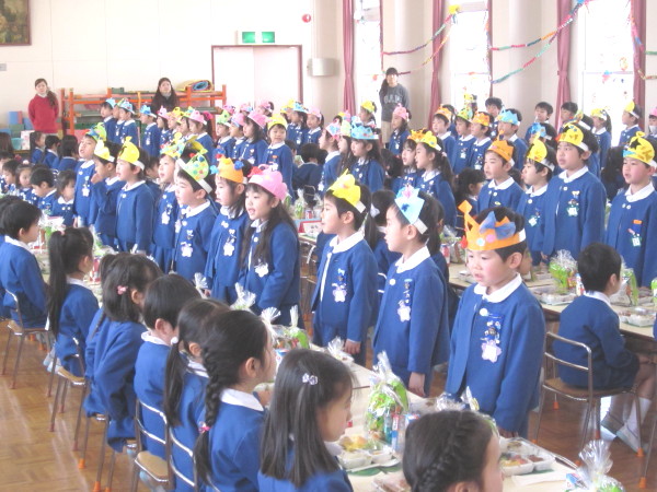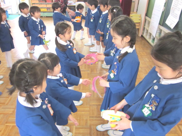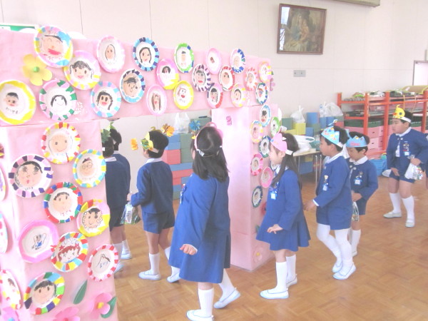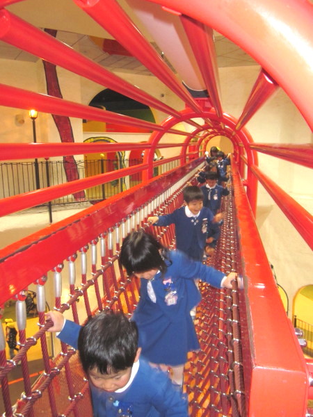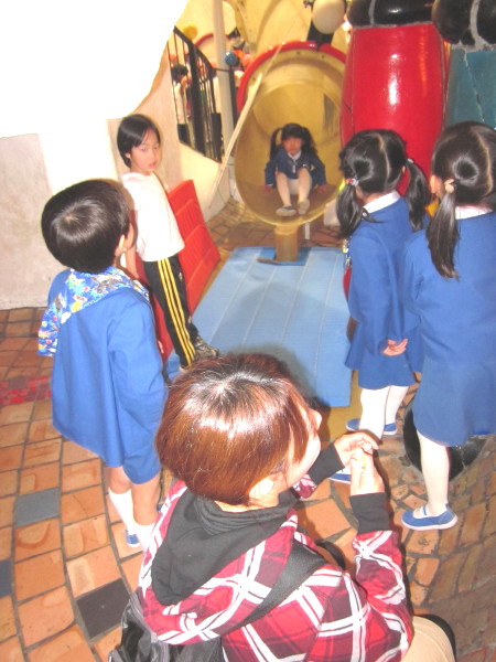 全 2086 件(全418ページ) 過去のページもご覧いただけます ⇒ 前へ 336 | 337 | 338 | 339 | 340 | 次へ 2011/3/15 kindergarten更新しました 3月の壁面 kindergarten更新しました 2011/3/15 3月の壁面 2011/3/11 お別れ遠足 今日は年長組と、幼稚園の先生たち全員でお別れ遠足に出かけました。前日までに配られたパンフレットを吟味・研究しながら「どこへいこうかな?」と楽しみにしていた子どもたち、【♪色んなせんせいチーム♪】に分かれて出発です!! あいにくの曇り空で、ちょっぴり肌寒い朝でしたが、心配ご無用!!(^v^)目的地は、扇町にある「こどものための博物館キッズプラザ」。室内にあるので雨が降っても大丈夫!・・・とはいっても登園してから、寒さも感じていないくらい興奮していたので、ケガや事故がないように、心を落ち着けてお祈りをします・・・。 あいにくの曇り空で、ちょっぴり肌寒い朝でしたが、心配ご無用!!(^v^)目的地は、扇町にある「こどものための博物館キッズプラザ」。室内にあるので雨が降っても大丈夫!・・・とはいっても登園してから、寒さも感じていないくらい興奮していたので、ケガや事故がないように、心を落ち着けてお祈りをします・・・。 幼稚園で留守を守って下さる園長先生に、「いってきます」のごあいさつ☆「えんちょうせんせい、いってきまーす!!」「困ったら先生を呼んでね。知ってるからってあっちこっち行っては危ないですよ」「はーい!!(^O^)」 幼稚園で留守を守って下さる園長先生に、「いってきます」のごあいさつ☆「えんちょうせんせい、いってきまーす!!」「困ったら先生を呼んでね。知ってるからってあっちこっち行っては危ないですよ」「はーい!!(^O^)」 バスの中では、<せんせいの秘密クイズ>三択問題が展開され、あーだ、こーだで大盛り上がり(^O^)/!!おや、もう目的地に到着です。「あっ!!見えた!!」「ほんとだ、もう着いちゃったぁ!!☆」 バスの中では、<せんせいの秘密クイズ>三択問題が展開され、あーだ、こーだで大盛り上がり(^O^)/!!おや、もう目的地に到着です。「あっ!!見えた!!」「ほんとだ、もう着いちゃったぁ!!☆」 入り口では、係のお姉さんに元気よくごあいさつ。「あ〜〜ワクワクするねぇ」「エレベーターに乗っていくんだよね!知ってる知ってる!」何回行っても楽しみなようです♪ 入り口では、係のお姉さんに元気よくごあいさつ。「あ〜〜ワクワクするねぇ」「エレベーターに乗っていくんだよね!知ってる知ってる!」何回行っても楽しみなようです♪ さあ、時間はたぁ〜〜っぷりあります。思いっきり遊びましょう!!!!「こっちまで来れる?大丈夫ー?」なんて声をかけている間に、みんなさっさと渡り切りました。下までまる見え、高いところにある赤い吊り橋もす〜いすい♪ さあ、時間はたぁ〜〜っぷりあります。思いっきり遊びましょう!!!!「こっちまで来れる?大丈夫ー?」なんて声をかけている間に、みんなさっさと渡り切りました。下までまる見え、高いところにある赤い吊り橋もす〜いすい♪ みんなで力を合わせて、甕に水を入れて倒す「じゃぶじゃぶポンプ」。ついに水があふれて “バッシャァーーン!!”向かいののぞき窓から見ている子どもの表情が愉快です。「あっちかぁ・・・。」 みんなで力を合わせて、甕に水を入れて倒す「じゃぶじゃぶポンプ」。ついに水があふれて “バッシャァーーン!!”向かいののぞき窓から見ている子どもの表情が愉快です。「あっちかぁ・・・。」 みんな大好きシャボン玉。うまくいきそうで、なかなか大きなものが作れません。大人も子どもも、みんな必死になっています!!あらら・・・。向こうで先生が一生懸命(^_^)v。その様子に笑顔のこどもたち。 みんな大好きシャボン玉。うまくいきそうで、なかなか大きなものが作れません。大人も子どもも、みんな必死になっています!!あらら・・・。向こうで先生が一生懸命(^_^)v。その様子に笑顔のこどもたち。 こちらは、「わいわいスタジオ」。ニュース番組の体験ができるのですが・・・・。本日のゲストたちは、少々緊張しているようです(笑) こちらは、「わいわいスタジオ」。ニュース番組の体験ができるのですが・・・・。本日のゲストたちは、少々緊張しているようです(笑) その様子が、すぐにテレビに映し出されます。画面を通すと、また違った印象に見える子どもたち。「ふーん・・こんなんかぁ・・・。」なんだか、自分を見ると恥ずかしいみたいです(笑) その様子が、すぐにテレビに映し出されます。画面を通すと、また違った印象に見える子どもたち。「ふーん・・こんなんかぁ・・・。」なんだか、自分を見ると恥ずかしいみたいです(笑) お別れ遠足 2011/3/11 今日は年長組と、幼稚園の先生たち全員でお別れ遠足に出かけました。前日までに配られたパンフレットを吟味・研究しながら「どこへいこうかな?」と楽しみにしていた子どもたち、【♪色んなせんせいチーム♪】に分かれて出発です!! あいにくの曇り空で、ちょっぴり肌寒い