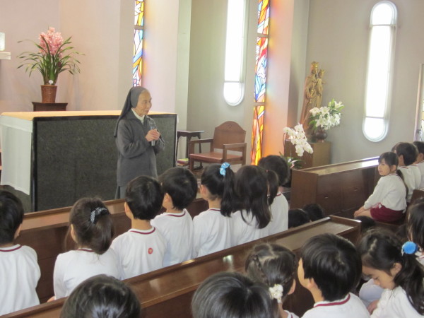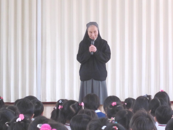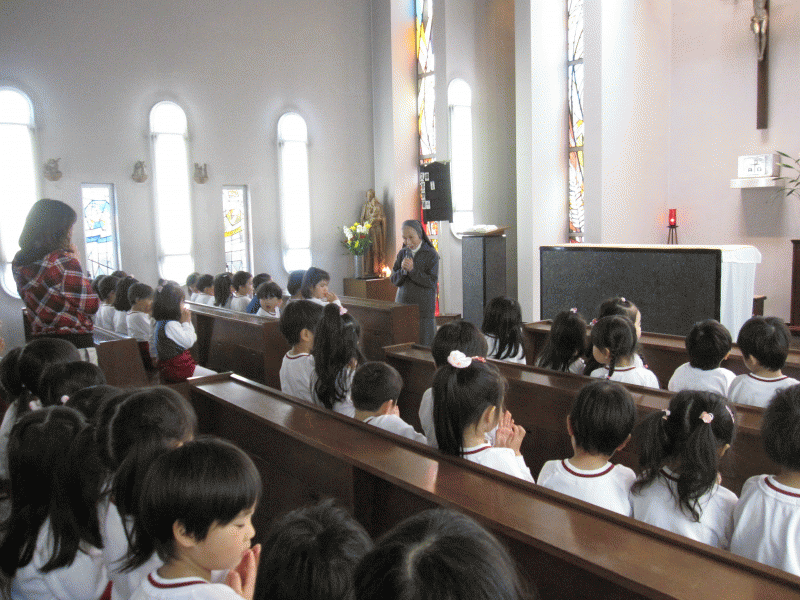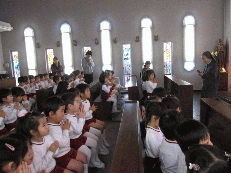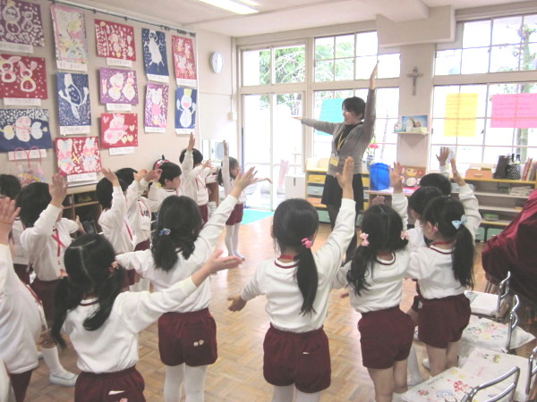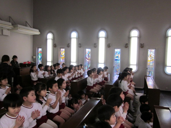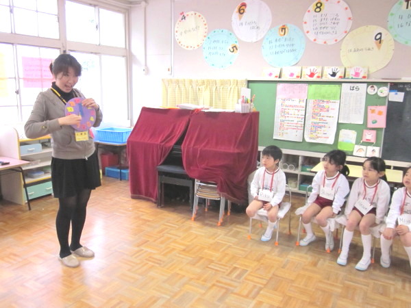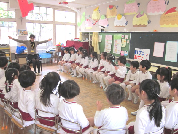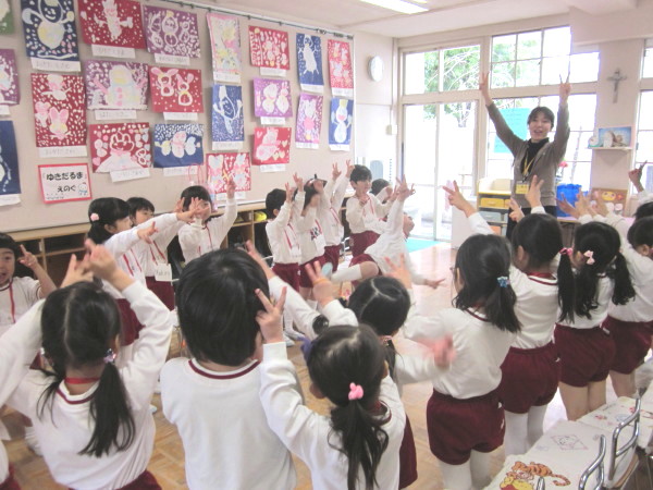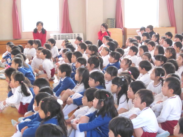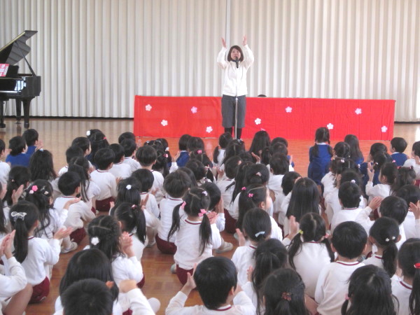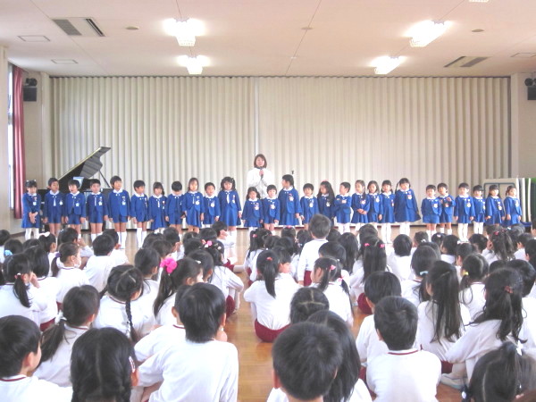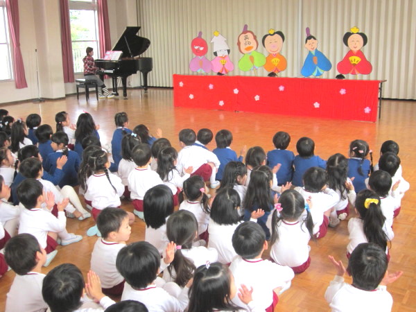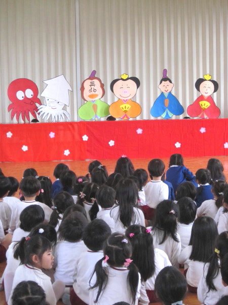 全 2086 件(全418ページ) 過去のページもご覧いただけます ⇒ 前へ 336 | 337 | 338 | 339 | 340 | 次へ 2011/3/4 kindergarten更新しました 2月の壁面 kindergarten更新しました 2011/3/4 2月の壁面 2011/3/2 3月 雛祭り誕生会 1年間の最後の月『3月』を迎えました。そして、今日は今年度最後のお誕生会でした☆ 3月生まれの子どもたちにとっては、待ちに待ったお誕生会。みんな胸をはって並んでいます!子どもたちが前に並ぶと・・・クラスのお友達から名前の紹介、そして歌と言葉のプレゼントをもらいました♪ 3月生まれの子どもたちにとっては、待ちに待ったお誕生会。みんな胸をはって並んでいます!子どもたちが前に並ぶと・・・クラスのお友達から名前の紹介、そして歌と言葉のプレゼントをもらいました♪ 園長先生からおメダイを頂いた子どもたち。楽しみにしていたおメダイを頂き、胸につけてもらった後もあまりの嬉しさに(?)、のせてもらった両手を出したまま…の子どももいました(^v^) 園長先生からおメダイを頂いた子どもたち。楽しみにしていたおメダイを頂き、胸につけてもらった後もあまりの嬉しさに(?)、のせてもらった両手を出したまま…の子どももいました(^v^) 園長先生のお話は「たくさんのおめぐみをいただいて、お友達にも優しい心を忘れず、お話をしたり、遊んだりできると、残りの日もとても素敵になると思います。」お友達が嬉しい気持ちになるような、親切な気持ちを忘れないで3月を過ごしたいと思います。 園長先生のお話は「たくさんのおめぐみをいただいて、お友達にも優しい心を忘れず、お話をしたり、遊んだりできると、残りの日もとても素敵になると思います。」お友達が嬉しい気持ちになるような、親切な気持ちを忘れないで3月を過ごしたいと思います。 先生からのプレゼントのまえに‥みんなで手遊びをしました!「いちーのゆび いちーのゆびいちーのゆびで とんとんとん‥♪」お遊戯室にあるピアノやとび箱の場所を指していきます! 先生からのプレゼントのまえに‥みんなで手遊びをしました!「いちーのゆび いちーのゆびいちーのゆびで とんとんとん‥♪」お遊戯室にあるピアノやとび箱の場所を指していきます! プレゼントは‥ひなまつりのパネルシアターでした☆こぶたのぷんちゃんと、ゴリラのぽんちゃんがお雛様の着物を着たいみたいです‥ プレゼントは‥ひなまつりのパネルシアターでした☆こぶたのぷんちゃんと、ゴリラのぽんちゃんがお雛様の着物を着たいみたいです‥ 願いが叶ったぷんちゃんと、ぽんちゃん!おやおや‥次は、いかのスミちゃん、たこのタコロウくんがやって来ましたよ!みんなやっぱりお雛様の着物がうらやましいみたい‥ 願いが叶ったぷんちゃんと、ぽんちゃん!おやおや‥次は、いかのスミちゃん、たこのタコロウくんがやって来ましたよ!みんなやっぱりお雛様の着物がうらやましいみたい‥ 「スミちゃんもタコロウくんもどうなるの〜?」見ているみんなも興味津々!! 「スミちゃんもタコロウくんもどうなるの〜?」見ているみんなも興味津々!! 最後は、タコロウくんもスミちゃんも着物を着ることができました♪みんなもホッと一安心!楽しい誕生会の時間となりました。 最後は、タコロウくんもスミちゃんも着物を着ることができました♪みんなもホッと一安心!楽しい誕生会の時間となりました。 幼稚園の中央ホールにもお雛様を飾っています。「お雛様ってどんな顔をしているの?」「どんな着物なんだろう〜?」立ち止まって…“じ〜っ”と見ている子どもたちの姿が見られています。 幼稚園の中央ホールにもお雛様を飾っています。「お雛様ってどんな顔をしているの?」「どんな着物なんだろう〜?」立ち止まって…“じ〜っ”と見ている子どもたちの姿が見られています。 3月 雛祭り誕生会 2011/3/2 1年間の最後の月『3月』を迎えました。そして、今日は今年度最後のお誕生会でした☆ 3月生まれの子どもたちにとっては、待ちに待ったお誕生会。みんな胸をはって並んでいます!子どもたちが前に並ぶと・・・クラスのお友達から名前の紹介、そして歌と言葉のプレゼントをもらいました♪ 3月生まれの子どもたちにとっては、待ちに待ったお誕生会。みんな胸をはって並んでいます!子どもたちが前に並ぶと・・・クラスのお友達から名前の紹介、そして歌と言葉のプレゼントをもらいました♪ 園長先生からおメダイを頂いた子どもたち。楽しみにしていたおメダイを頂き、胸につけてもらった後もあまりの嬉しさに(?)、のせてもらった両手を出したまま…の子どももいました(^v^) 園長先生からおメダイを頂いた子どもたち。楽しみにしていたおメダイを頂き、胸につけてもらった後もあまりの嬉しさに(?)、のせてもらった両手を出したまま…の子どももいました(^v^) 園長先生のお話は「たくさんのおめぐみをいただいて、お友達にも優しい心を忘れず、お話をしたり、遊んだりできると、残りの日もとても素敵になると思います。」お友達が嬉しい気