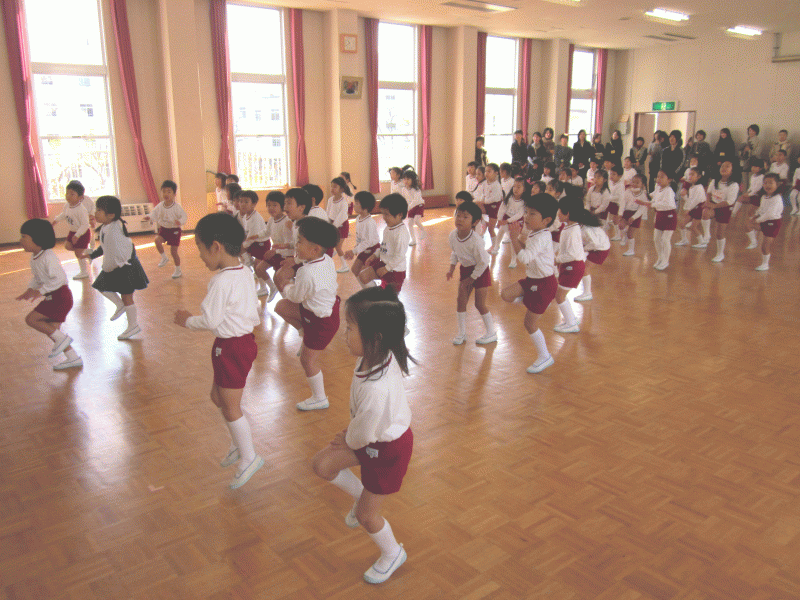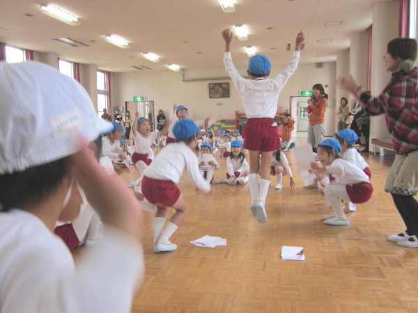 お話を聞いた後は、ピーターパン体操をして体を十分に