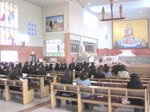 朝は冷たい雨が降りましたが、子ども達の祝福式が始まる頃になると、先ほどまでの黒い雲が一転、驚くほど晴れ渡り、暖かい日差しが大聖堂内に降り注いでいました。