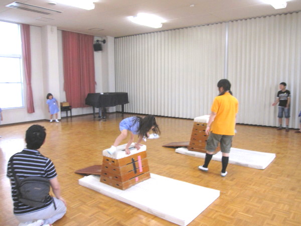時には、バランスがうまく取れなくって転んでしまう子もいました。