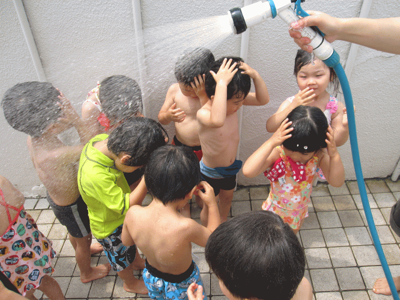 年中組からは大きななプールに入るので、子ども達もドキドキしているようでした。