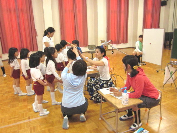 健康状態を把握するため、幼稚園では、眼科・内科・耳鼻科・歯科検診が