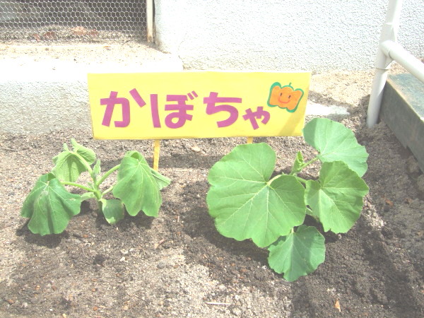 かぼちゃは年中組で二株植えました!!