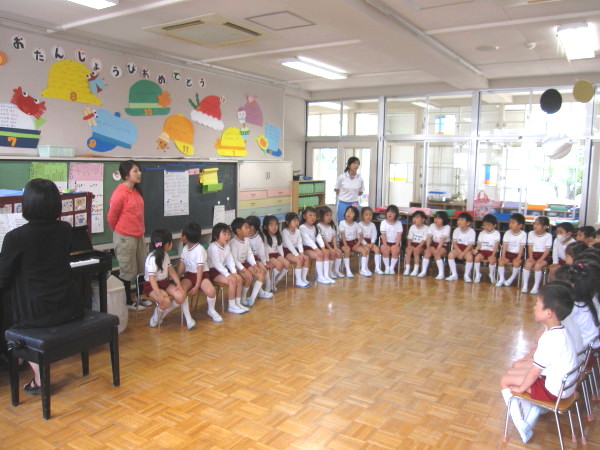 「大きな声で元気に歌うことも大事だけど、一つ一つの【音】を大切にして歌うことが、聞いている人を感動させたりすることができるんですよ。これから、沢山の曲に出会って、みんなの素敵な声で歌っていきましょうね。」
