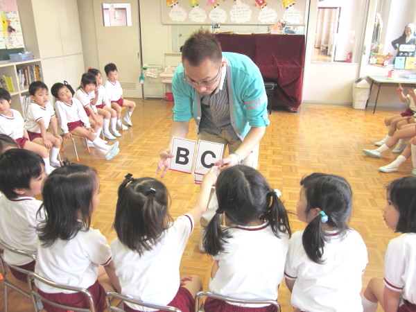 英語教育は、年中組での、日本人教師とネイティブによるレッスンから、
