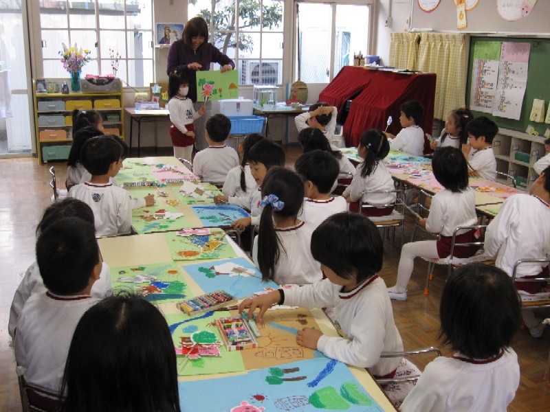 みんなが出来上がると、近くのお友達とお話のしあいっこ!