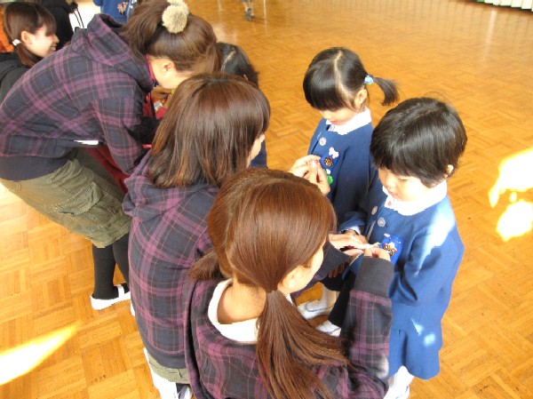 「おうちに帰ったら、なくさないようにお母さんにつけてもらってね」