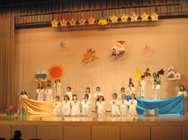 年少組・年中組・年長組それぞれの発表や、サンタさんにプレゼントを