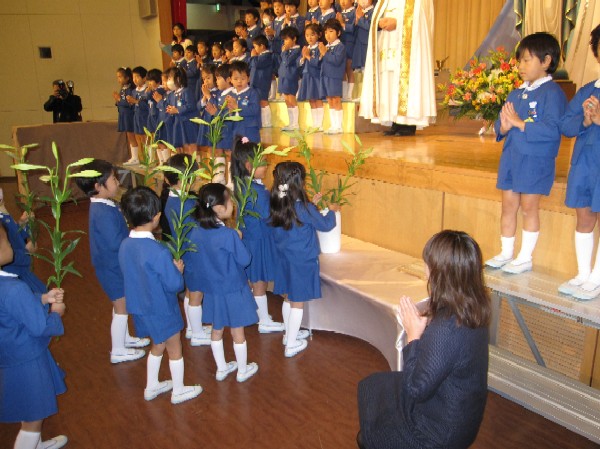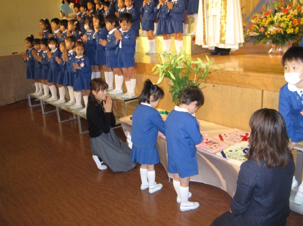 5月の聖母祭では、幼稚園にて子ども達だけでお祝いをしましたが、