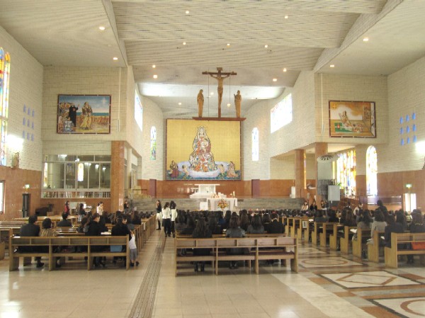 すばらしいステンドグラスや正面のマリア様に見入っていました。