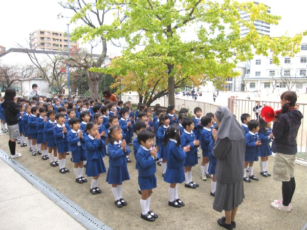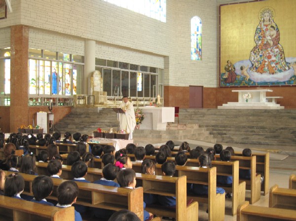 神父様のお話を聞いたり、子ども達の