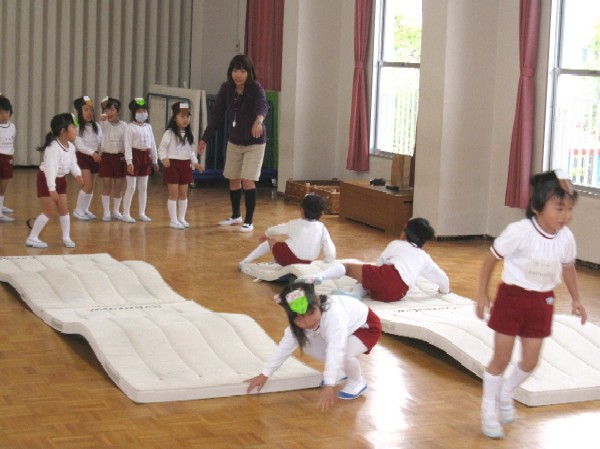 マットの山を軽快に転がっていく子どもたち。