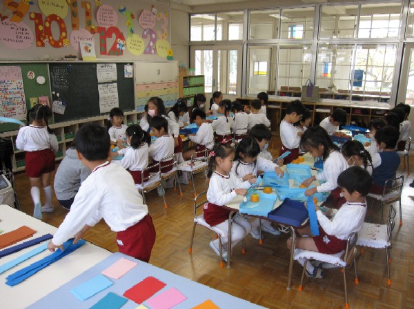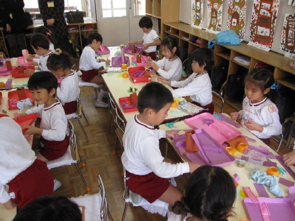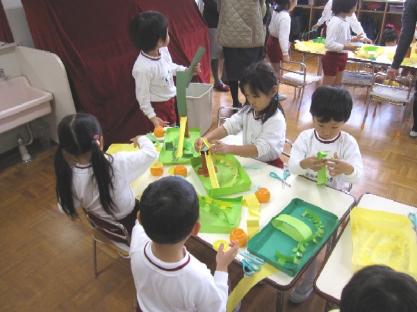 作りたてでのりがはずれちゃう子もいましたが、