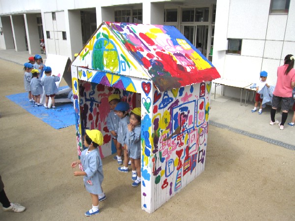 絵の具ハウスではダンボール製の大きなお家に、