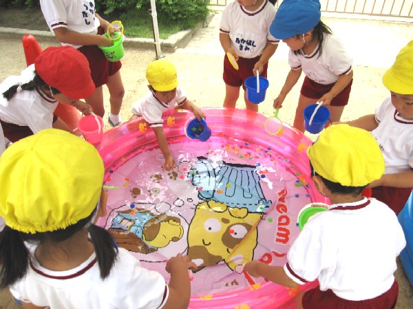 金魚すくいに色水遊び、泥んこ、絵の具ハウスなど、楽しいことがいっぱい!!