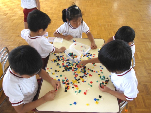 また机の上で、年少組のプチプチ・年中組のLaQ・年長組のオセロなどが出ていて、