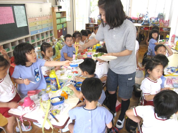 プール後のお弁当中とあって、きゅうりは大人気!