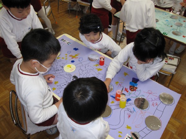 全 2086 件(全418ページ) 過去のページもご覧いただけます ⇒ 前へ 396 | 397 | 398 | 399 | 400 | 次へ 2009/1/23 1月誕生会☆ 今日は、1月生まれの子どもたちの誕生会☆歌のプレゼントと、おメダイを頂いて、とっても嬉しそうな子どもたち♪先生達からのプレゼントは、マジックショー★先生が魔法の箱に入って、「1、2、3、ドーーン!!」みんなで呪文を唱えると・・・なんと!中に入っているのはさっきとは違う先生!子どもたちは「先生がいない(>_<)!!」「不思議だね!」と、大盛り上がりでした♪さてさて、この後、最初に箱に入った先生は見つかったのかな? 今日は、1月生まれの子どもたちの誕生会☆歌のプレゼントと、おメダイを頂いて、とっても嬉しそうな子どもたち♪先生達からのプレゼントは、マジックショー★先生が魔法の箱に入って、「1、2、3、ドーーン!!」みんなで呪文を唱えると・・・なんと!中に入っているのはさっきとは違う先生!子どもたちは「先生がいない(>_<)!!」「不思議だね!」と、大盛り上がりでした♪さてさて、この後、最初に箱に入った先生は見つかったのかな? 1月誕生会☆ 2009/1/23 今日は、1月生まれの子どもたちの誕生会☆歌のプレゼントと、おメダイを頂いて、とっても嬉しそうな子どもたち♪先生達からのプレゼントは、マジックショー★先生が魔法の箱に入って、「1、2、3、ドーーン!!」みんなで呪文を唱えると・・・なんと!中に入っているのはさっきとは違う先生!子どもたちは「先生がいない(>_<)!!」「不思議だね!」と、大盛り上がりでした♪さてさて、この後、最初に箱に入った先生は見つかったのかな? 今日は、1月生まれの子どもたちの誕生会☆歌のプレゼントと、おメダイを頂いて、とっても嬉しそうな子どもたち♪先生達からのプレゼントは、マジックショー★先生が魔法の箱に入って、「1、2、3、ドーーン!!」みんなで呪文を唱えると・・・なんと!中に入っているのはさっきとは違う先生!子どもたちは「先生がいない(>_<)!!」「不思議だね!」と、大盛り上がりでした♪さてさて、この後、最初に箱に入った先生は見つかったのかな? 2009/1/22 年長組 園開放 3日目! 今日は、グループにわかれてすごろくを作りました。それぞれ工夫し、話し合いながらオリジナルなものが出来上がりました☆作った後は、すごろく大会!!「1回休みや〜(>_<)」「3こすすむ!」「やったー!ゴール!!」と大盛り上がりでした。いろんな活動に取り組み、充実した3日間でした。寒い中、お越し下さりどうもありがとうございました! 今日は、グループにわかれてすごろくを作りました。それぞれ工夫し、話し合いながらオリジナルなものが出来上がりました☆作った後は、すごろく大会!!「1回休みや〜(>_<)」「3こすすむ!」「やったー!ゴール!!」と大盛り上がりでした。いろんな活動に取り組み、充実した3日間でした。寒い中、お越し下さりどうもありがとうございました! 年長組 園開放 3日目! 2009/1/22 今日は、グループにわかれてすごろくを作りました。それぞれ工夫し、話し合いながらオリジナルなものが出来上がりました☆作った後は、すごろく大会!!「1回休みや〜(>_<)」「3こすすむ!」「やったー!ゴール!!」と大盛り上がりでした。いろんな活動に取り組み、充実した3日間でした。寒い中、お越し下さりどうもありがとうございました! 今日は、グループにわかれてすごろくを作りました。それぞれ工夫し、話し合いながらオリジナルなものが出来上がりました☆作った後は、すごろく大会!!「1回休みや〜(>_<)」「3こすすむ!」「やったー!ゴール!!」と大盛り上がりでした。いろんな活動に取り組み、充実した3日間でした。寒い中、お越し下さりどうもありがとうございました! 2009/1/22 年中組☆園開放?日目 最終日の今日は、子ども達の大好きな英語とビンゴゲームをしました♪今日のレッスンは、歌ありゲームありの盛りだくさんの内容で、子ども達も声を出しながら元気に取り組んでいました☆ビンゴゲームでは、ビンゴカードから子ども達が作り、1〜15の数字を使ってゲームをしました☆ 「ビンゴ〜!!」と言う声がクラス中に響き、数字にも興味を持ちながら、楽しむことが出来ました!色々な活動を楽しむができた3日間でした☆寒い中、お越し下さりありがとうございました。 最終日の今日は、子ども達の大好きな英語とビンゴゲームをしました♪今日のレッスンは、歌ありゲームありの盛りだくさんの内容で、子ども達も声を出しながら元気に取り組んでいました☆ビンゴゲームでは、ビンゴカードから子ども達が作り、1〜15の数字を使ってゲームをしました☆ 「ビンゴ〜!!」と言う声がクラス中に響き、数字にも興味を持ちながら、楽しむことが出来ました!色々な活動を楽しむができた3日間でした☆寒い中、お越し下さりありがとうございました。 年中組☆園開放?日目 2009/1/22 最終日の今日は、子ども達の大好きな英語とビンゴゲームをしました♪今日のレッスンは、歌ありゲームありの盛りだくさんの内容で、