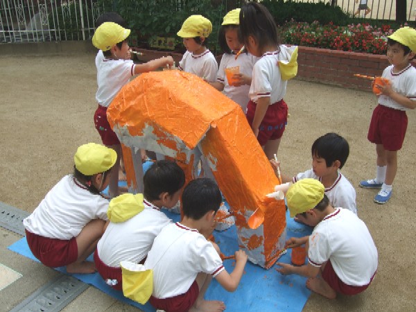 今、年長組でサファリパークを共同制作しています。
