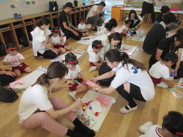 「サングラスは、頭の上にかけよう!」や「顔にかけたい!」などと、楽しそうに制作する様子が見られました☆