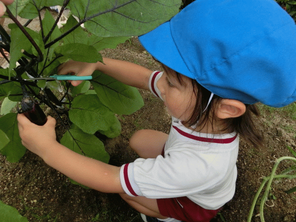 年中組で育てている「ナス」が実ったので、収穫しました☆彡