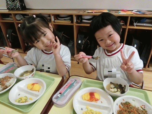 子どもたちは、「美味しい!!」と言いながら笑顔で食べていました。ナスが苦手な子どもたちも「食べてみる!」と頑張って、食べている様子が見られました。