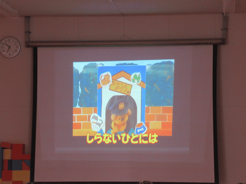 子どもたちは「あー知ってる!」「それはだめだよ〜」と言いながら見ていました!!