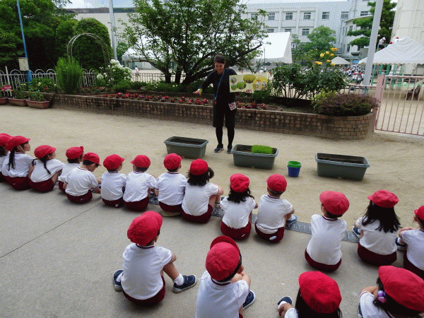 各学年で育てている夏野菜も太陽の光をいっぱい浴びて、大きくなってきました。空からのお恵みの雨をうけて、ますます大きくなることと思います♪