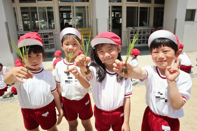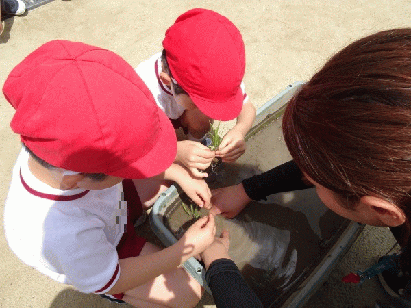 そんな今日は、年長組みんなでお米の苗を植えました!