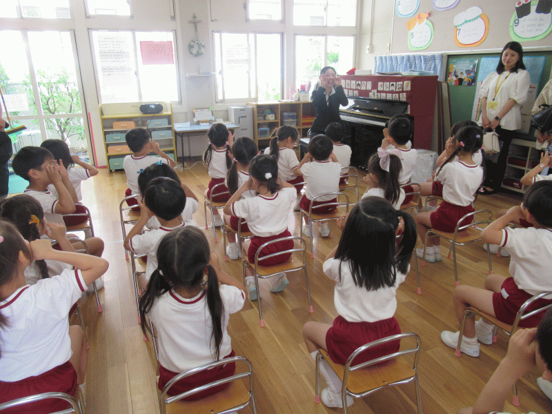 小聖堂に行く前に、お部屋で「神様のお家に行くんだよ」というお話を聞き、「どんな感じのところなのかな?」とワクワクしながら手を合わせて静かに向かいます。