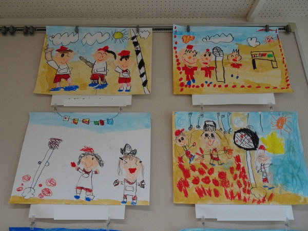 年中組の10月壁面は絵画『運動会の絵』です☆