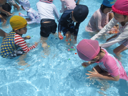 朝から、子どもたちは「今日は、プールだね!」「早く入りたいな〜!」と、とてもプールを楽しみにしている様子でした☆