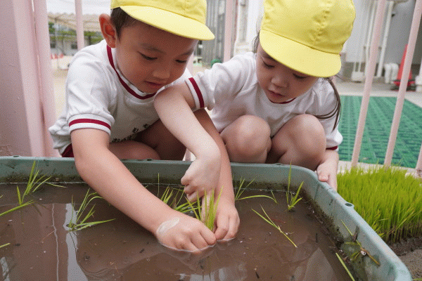 先日、年長組みんなでお米の苗を植えました!