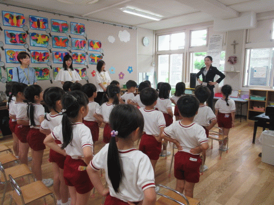 みんなでお遊戯室に集まり、お祈りをします。