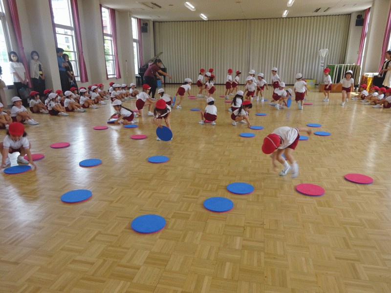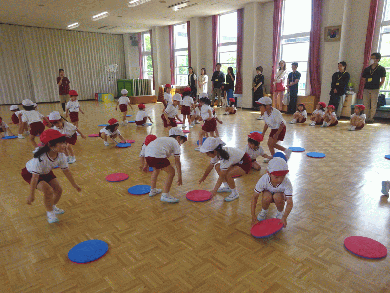 最後の「信号ゲーム」では青、赤、黄色の掛け声に合わせてジャンプをし、皆負けないように一生懸命頑張っていました!