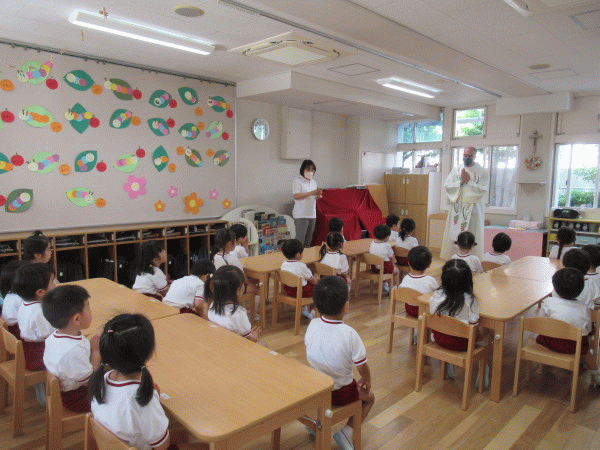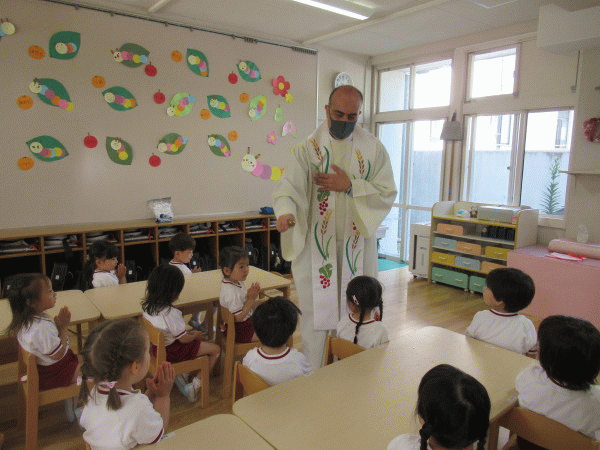 年少組は、各クラスにジョバンニ神父様が来てくださり、