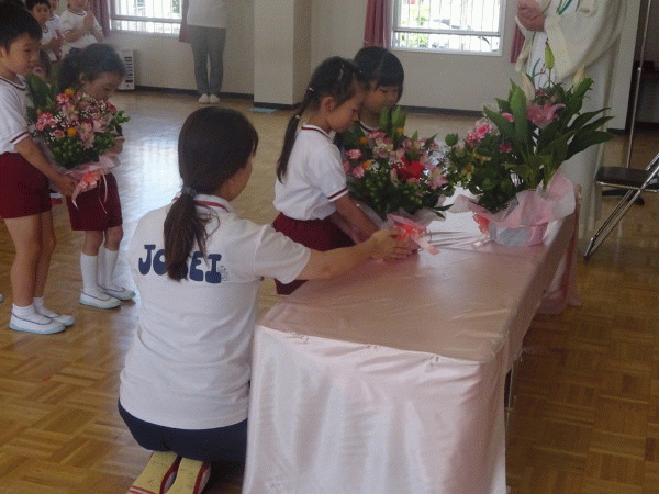 そして、各クラスの代表の子ども達が「徳の花」を捧げました。