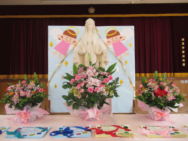 今日は、そんなマリア様に日々の感謝の気持ちを込めて、皆でお祈りをお捧げしました。
