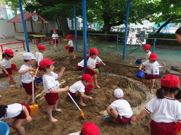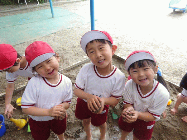 朝、登園すると「今日は泥んこ遊び出来るね!」と、ニコニコ笑顔の子ども達♪