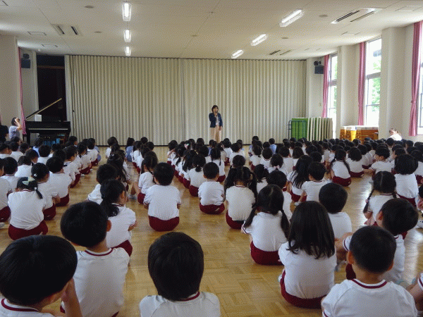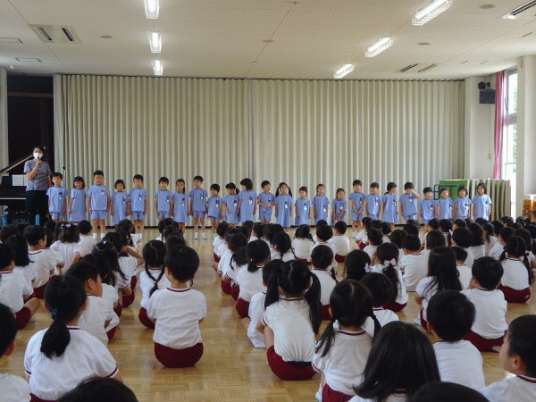 その後園長先生から「暑くなってきたけれど、元気いっぱい遊びましょう。」「神様からのお恵みの雨に感謝しましょうね。」とお話を頂きました☆