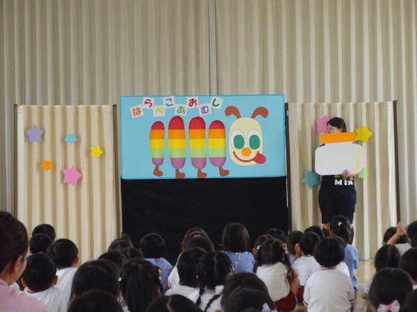 次から次へと色が変わるあおむしさんに、子ども達も大喜びでした(^−^)♪