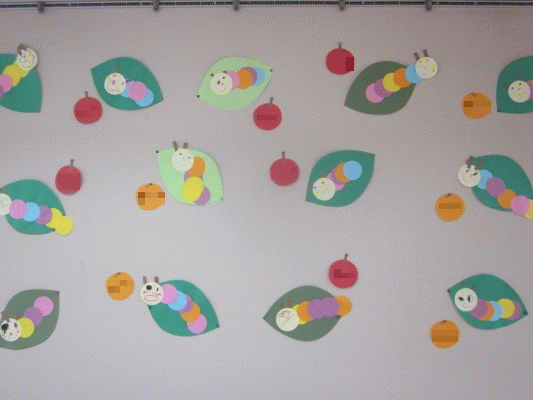 からだをつなげることに、苦戦する様子も見られましたが、色とりどりのかわいいあおむしを作ることができました(^0^)
