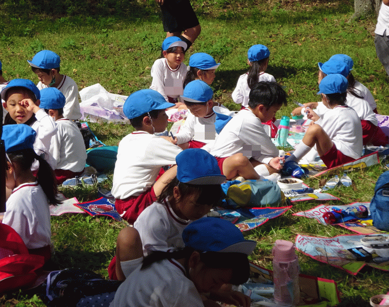 まず始めに、年少組と年中組が行い、年長組は、遠足後のお迎えの際に行いました。