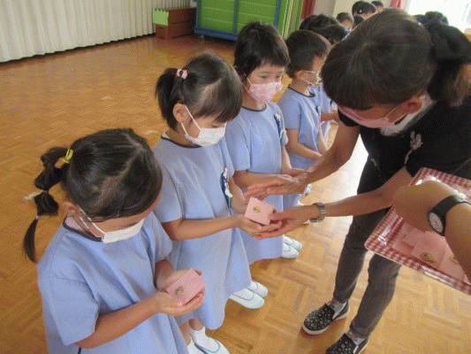 先日、大雨の影響で自由登園となった為、実施出来なかった8月のお誕生会を本日実施しました(^^)